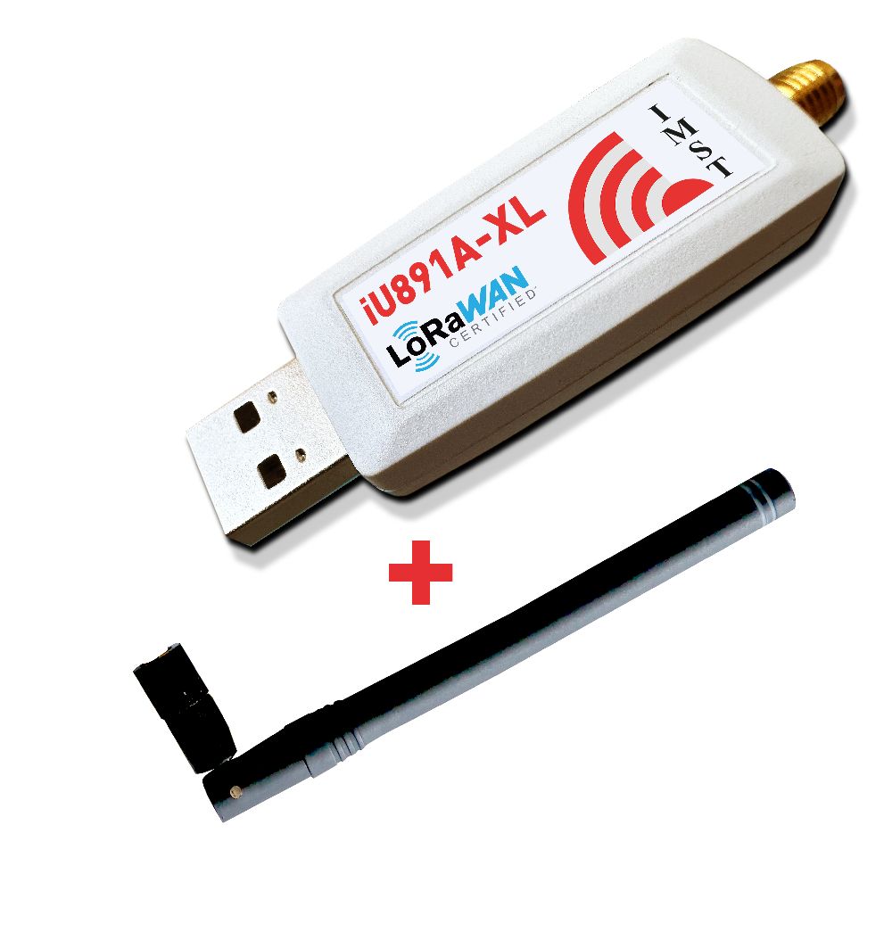 The bundle iU891A-XL (includes USB-Stick and antenna) is a compact and cost–effective USB stick based on the Long Range Radio Module iM891A-XL that operates in the unlicensed 868 MHz band.